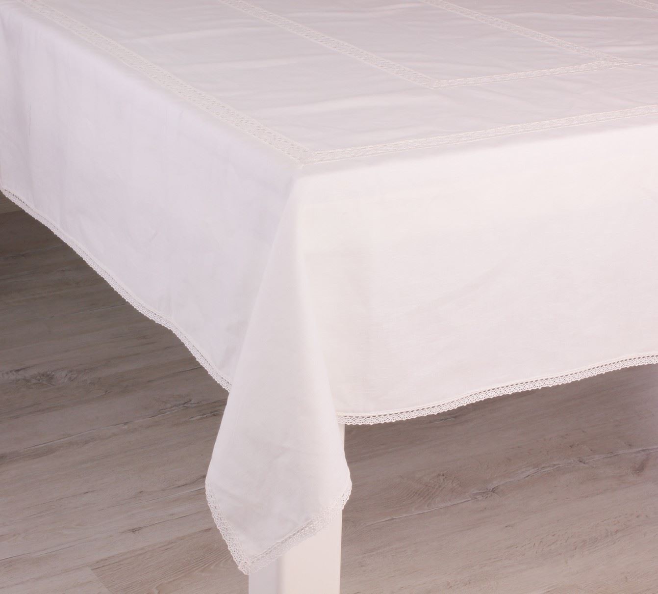 KETEN EKRU DANTEL APLİKELİ DİKDÖRTGEN MASA ÖRTÜ