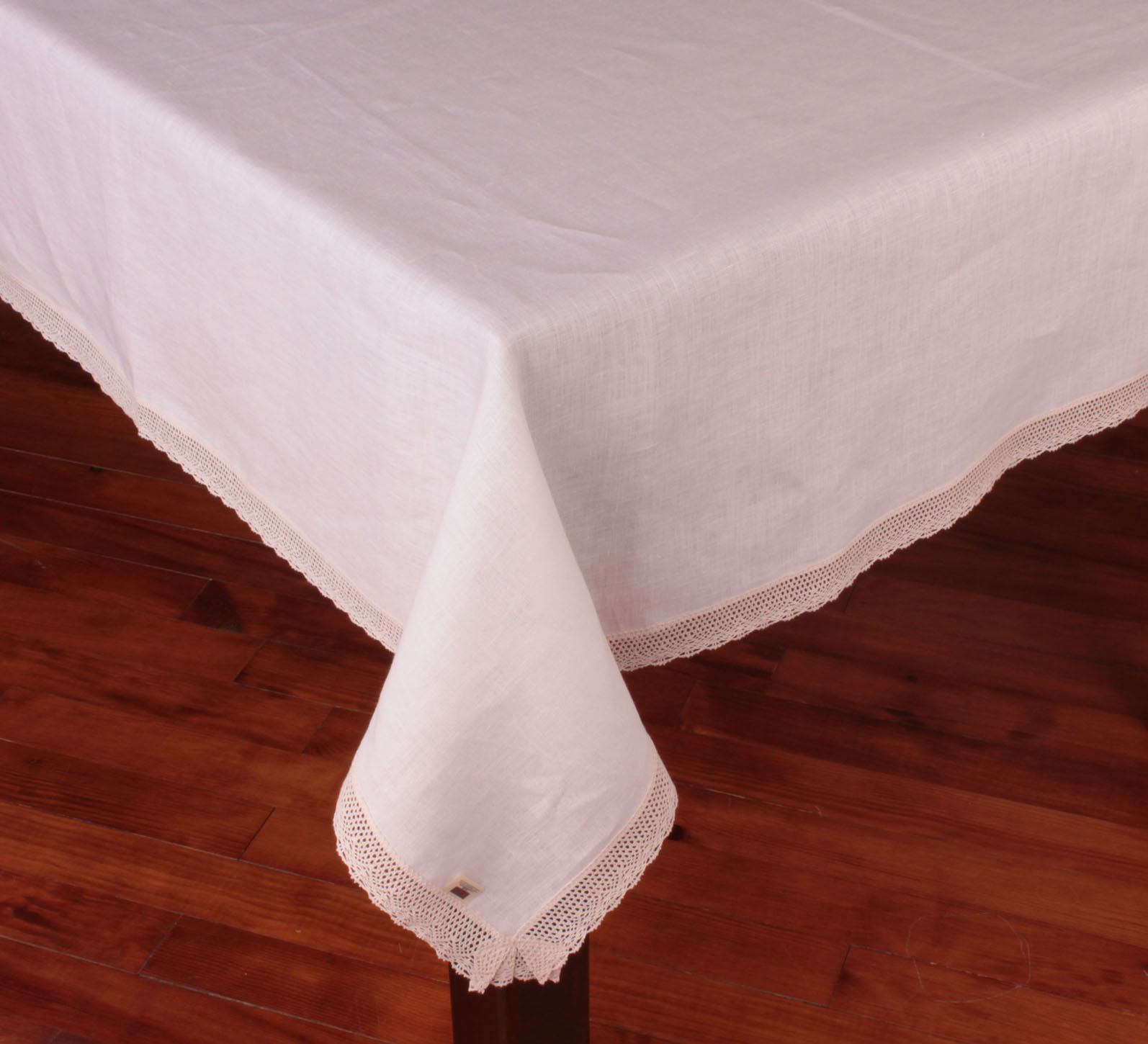 KETEN EKRU DANTEL KENARLI DIKDÖRTGEN MASA ÖRTÜ