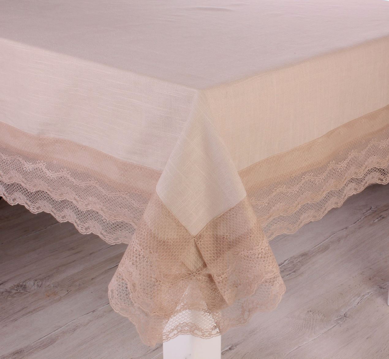 KETEN BEJ DANTELLİ DİKDÖRTGRN MASA ÖRTÜSÜ